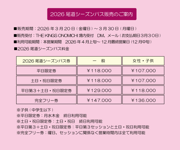 | 2026年シーズンパス販売のご案内 | |||||||||||||||||||||||||||||||||||||||||